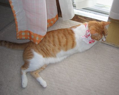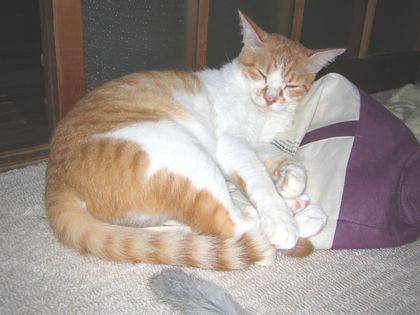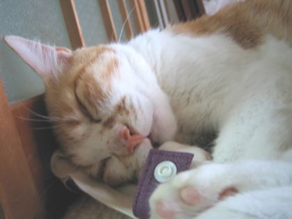 朝晩だいぶ涼しくなって過ごしやすくなりました。 ところで、この間衝撃の事実が発覚しました。 この家には、ストーブも無いそうです。 多分今年は買うよ、とアルジは言っておりますが信用できません。 きっと俺はコタツに引きこもります。 でも、今だけはぐっすり眠れます。・・・・・って あっ!何ヒトの寝顔アップで撮っているんですか。 こういう悪趣味は止めてください。