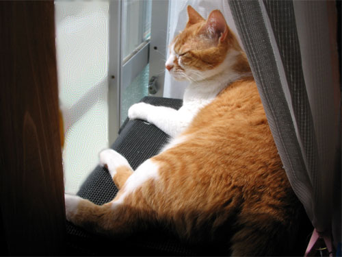 サボっている間にいい季節になりました。 二度寝が気持ちいい季節です。 アルジが「布団が上げられない」と睨んでいます。 布団から追い出されたので、窓から外を見ることにしました。 窓は下半分がすりガラスになっているので、アルジがカラーボックスを買ってくれました。 上は滑らないように、滑り止めマットを敷いてあります。 結局アルジはストーブを買ってくれませんでした。 また夏が来るので、ちょっと憂鬱です。 サービス残業代をもらえれば買えるのにね、せめてボーナスがあれば買えるのにね、ってアルジは言います。 人間の世界って難しいですね。